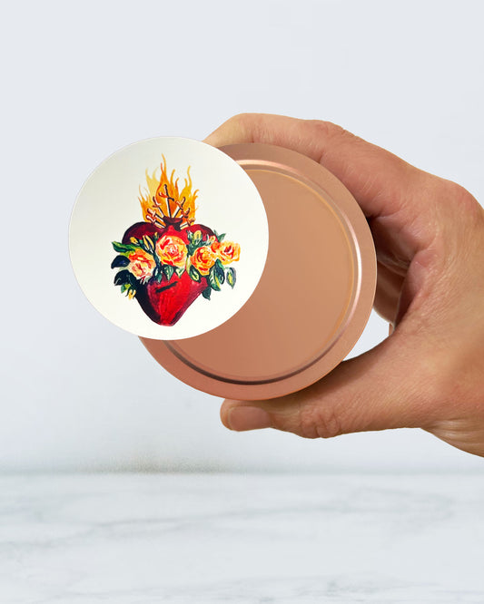 Sacred Heart Candle Tin (Chrism Scented, Rose Gold)