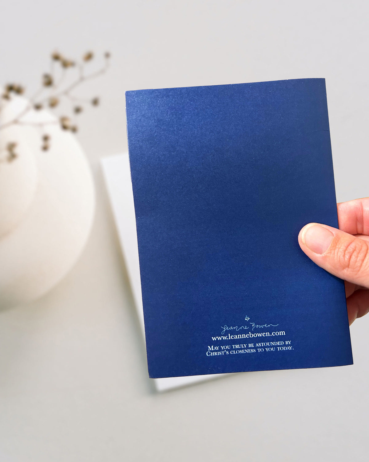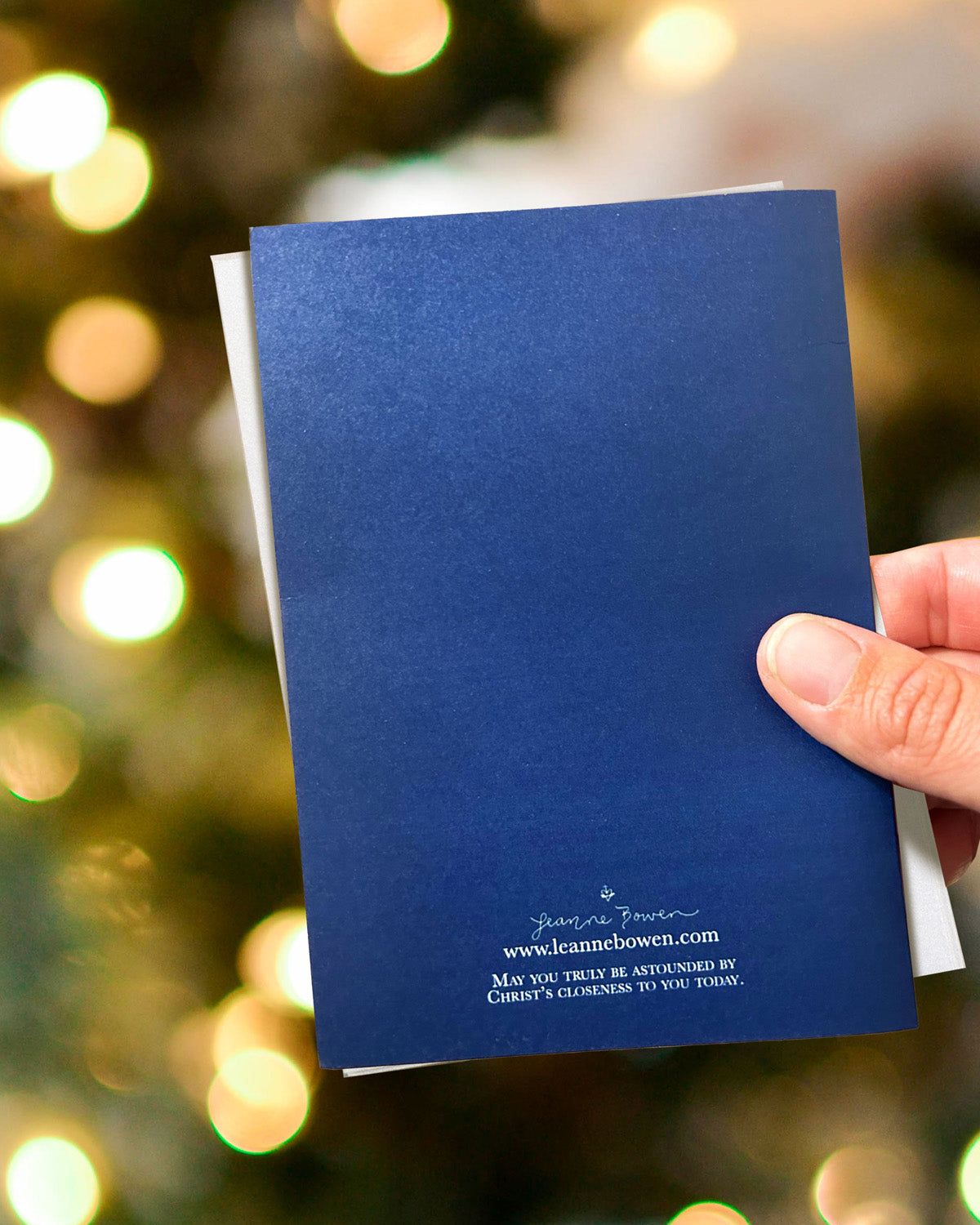 The greeting cards are 4.25"x 6" and printed on matte card stock for easy writability. They are in packs of five and come with a sturdy white envelope and are so festive for the holiday season. They have a rich deep Marian blue back and say "May you truly be astounded by Christ's closeness to you today."