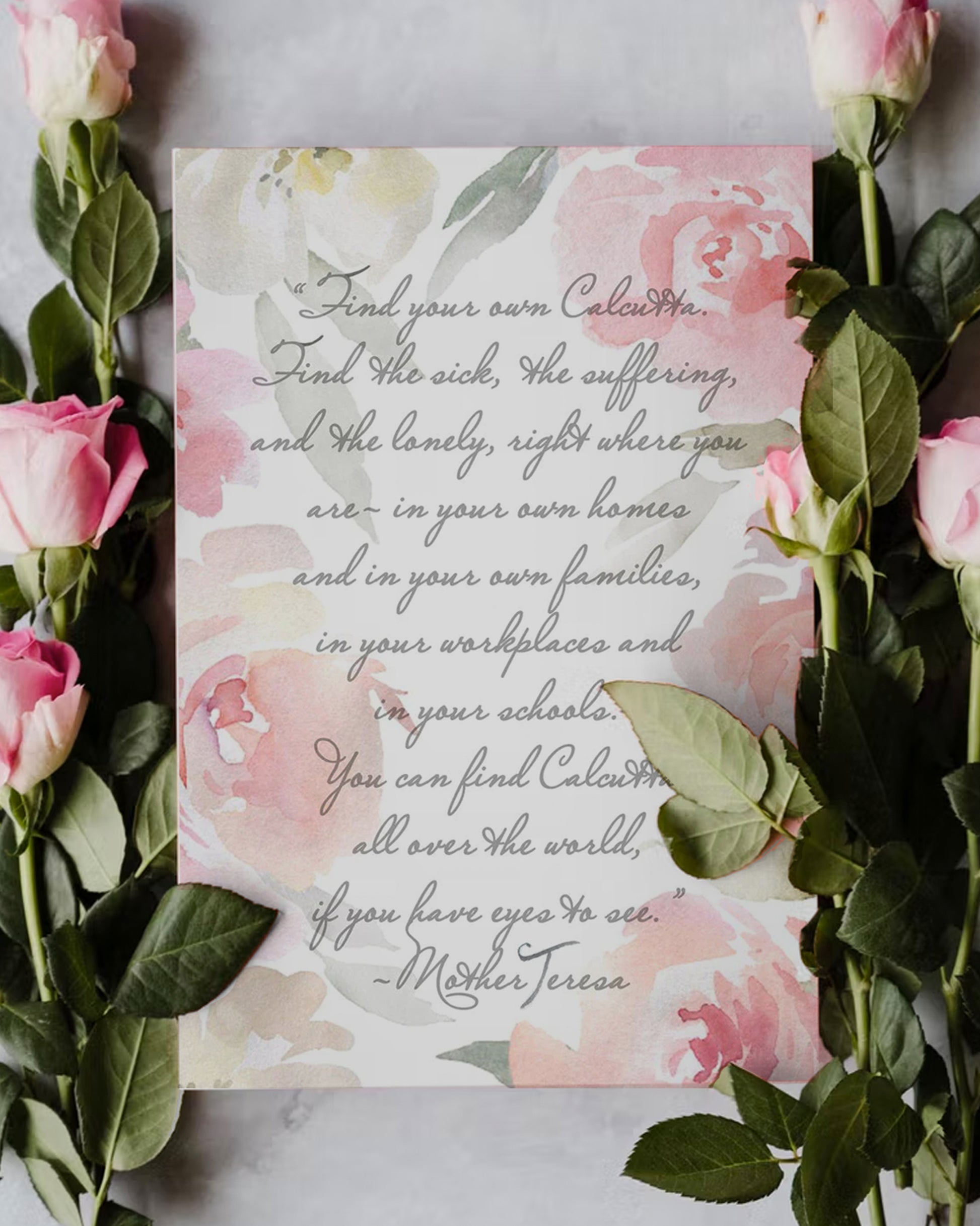 Mother Teresa said, “Find your own Calcutta. Find the sick, the suffering, and the lonely, right where you are — in your own homes and in your own families, in homes and in your workplaces and in your schools. You can find Calcutta all over the world, if you have eyes to see."