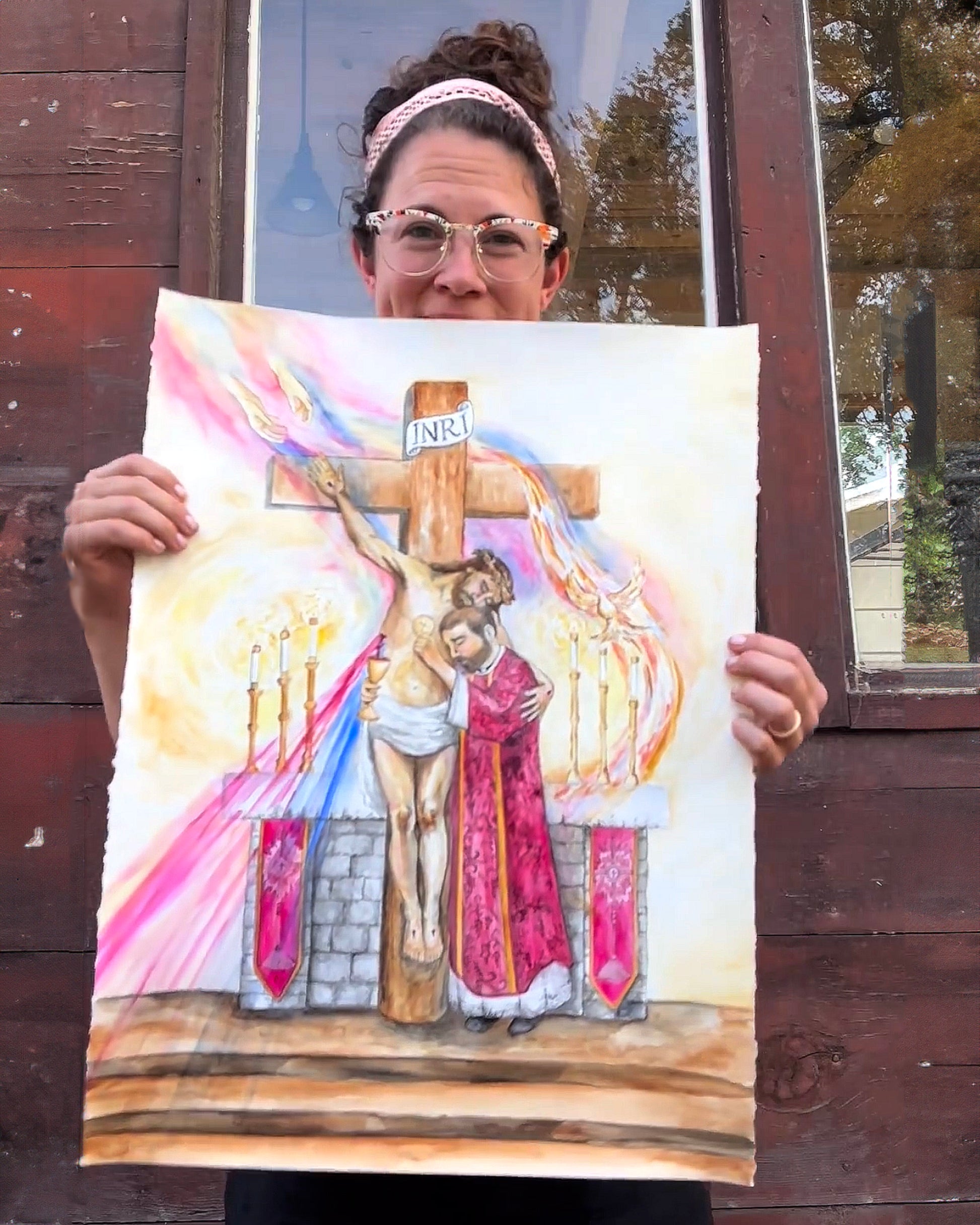 This Original Painting is 18"x24" on watercolor paper with deckled edges. It is a very large watercolor with intricate detail. It reflects endless hours of work and prayer by the artist. This original painting comes with an 11"x14" Print with the meditation printed on the back. It will be sent by the artist from her studio, hand signed on both the front and back of the image. The artist will send a personalized note with the painting and the painting will ship separately from other items in your order.