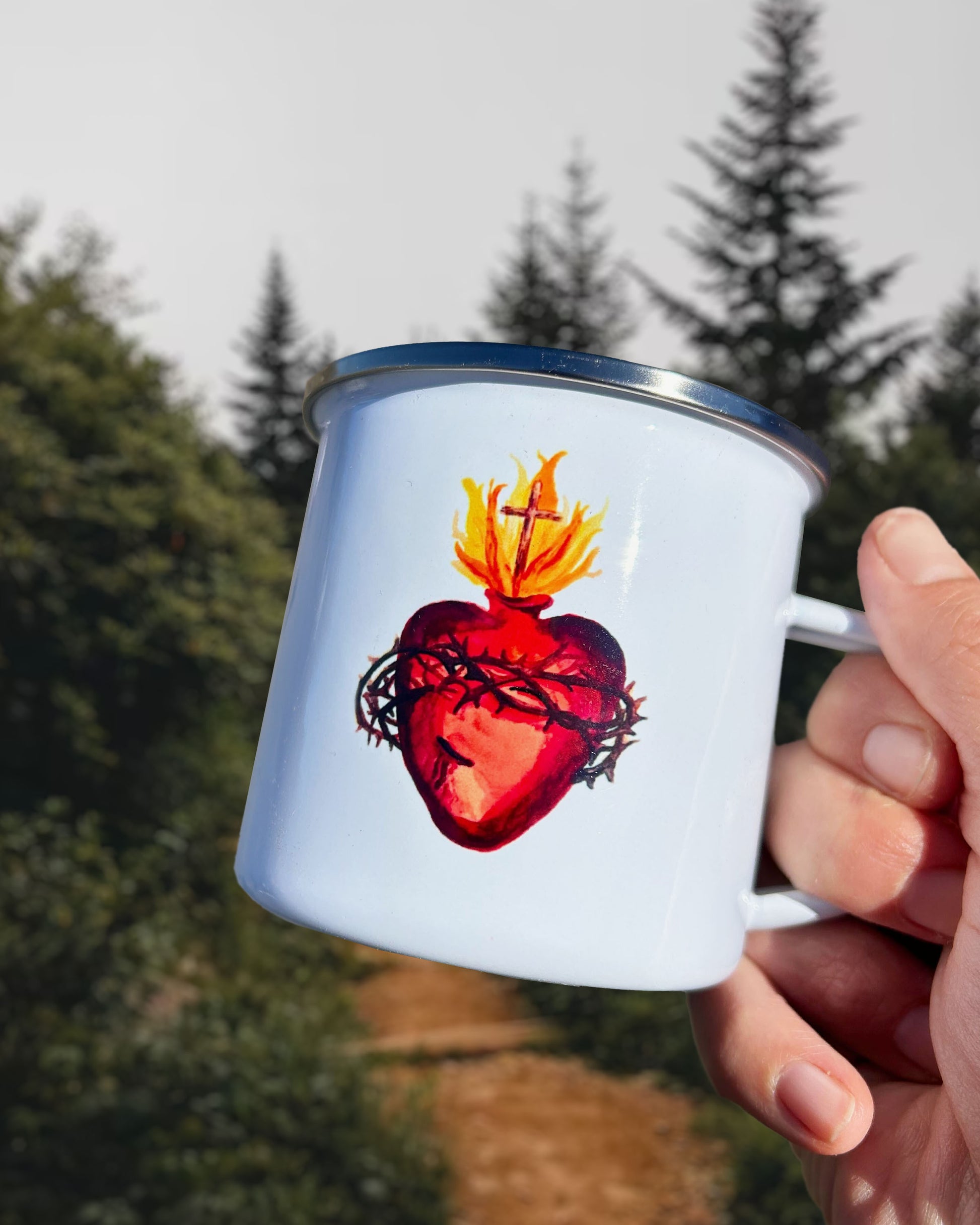Perfect for coffee, tea, or any hot beverage, this mug is the perfect way to start your day close to the heart of Christ. It reminded me of the mugs we took camping as a kid- but also stirs my deep desire to remain close to Jesus’s heart.