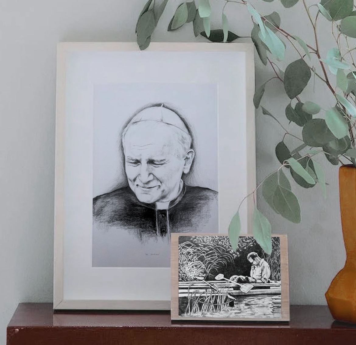 "Every genuine artistic intuition goes beyond what the senses perceive and, reaching beneath reality's surface, strives to interpret its hidden mystery. The intuition itself springs from the depths of the human soul, where the desire to give meaning to one's own life is joined by the fleeting vision of beauty and of the mysterious unity of things. All artists experience the unbridgeable gap which lies between the work of their hands, however successful it may be, and the dazzling perfection of the beauty glimpsed in the ardor of the creative moment: what they manage to express in their painting, their sculpting, their creating is no more than a glimmer of the splendor which flared for a moment before the eyes of their spirit." -John Paul II in Letter to Artists