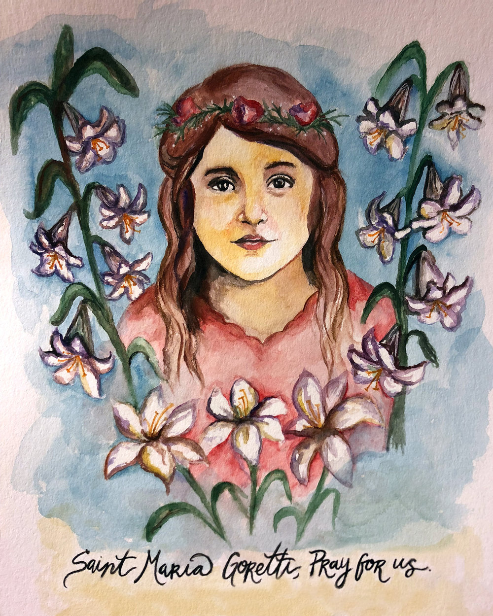 “Maria Goretti was close to her 12th birthday when she was stabbed to death by 20-year old Alessandro Serenelli, a farmworker who shared a dwelling with her family. Alessandro attacked the young girl when she resisted his efforts to sexually assault her. Maria initially survived the horrific wounds to her body and was transported to a hospital, where doctors were able to do little for her. During the painful 20 hours leading to her death on July 6, 1902, Maria prayed with her mother, siblings, and priest, stating repeatedly that she forgave her attacker and that she was sure that God had forgiven him, as well.
