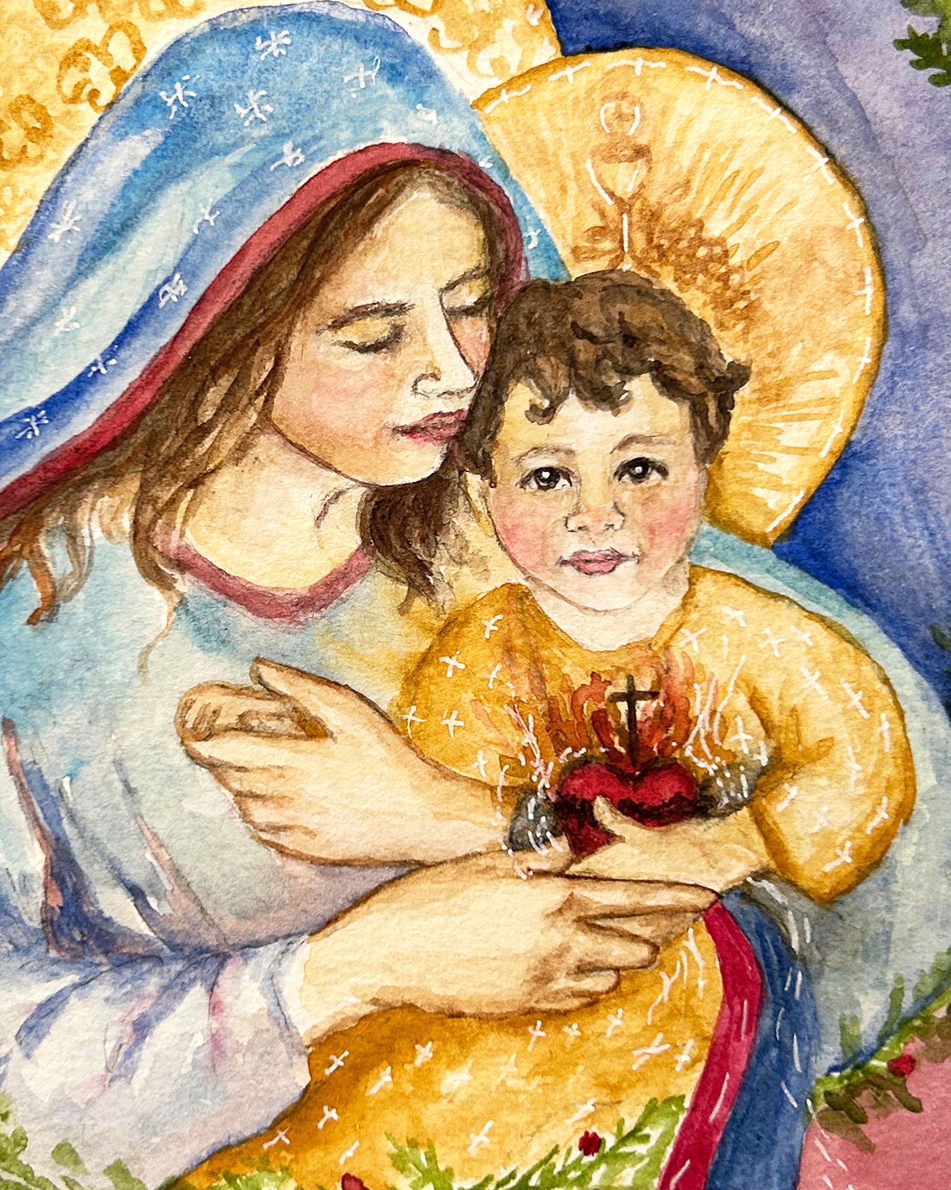 His mother longs to hold you, and desires for her mantle of protection to keep you. She longs to shine light into your woundedness, so that Jesus can heal it. She is the flower and beauty that blooms around you. Christ is the everlasting King, seated on the throne of a humble handmaiden.
