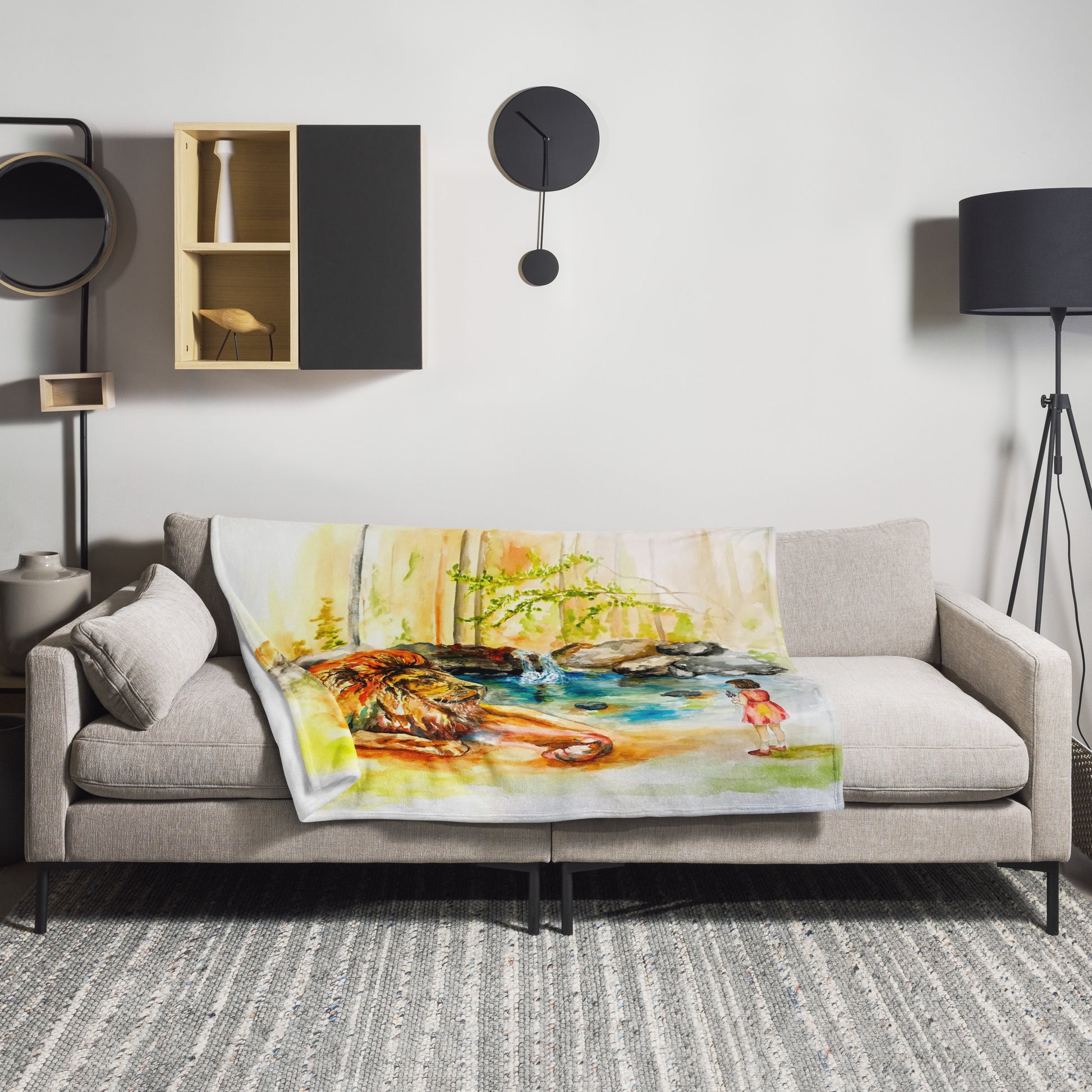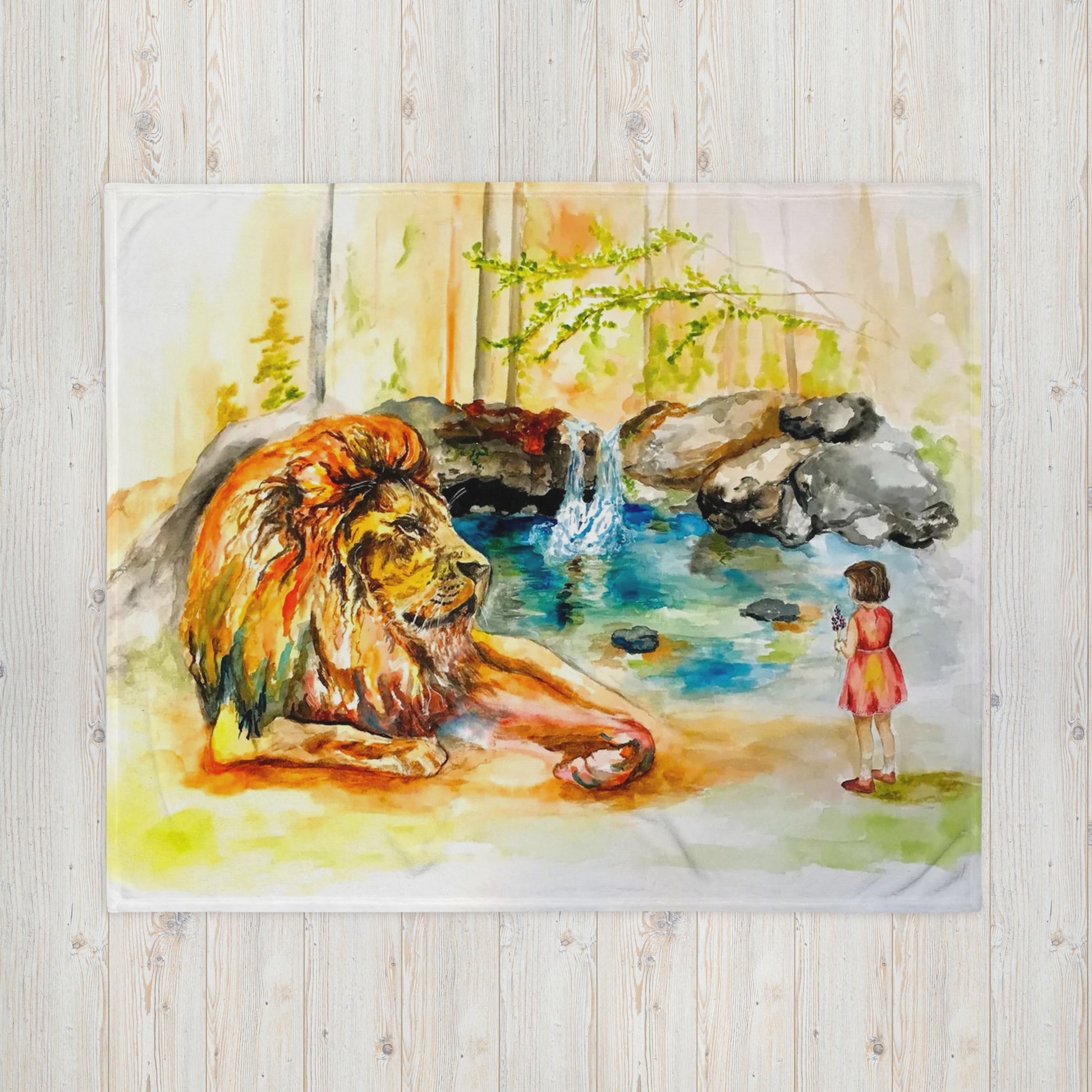 This soft and cozy blanket is the perfect gift and makes a great addition to any home! This blanket is beautifully vibrant in color and is very nostalgic for any Narnia lovers! It depicts Aslan and Lucy in conversation.