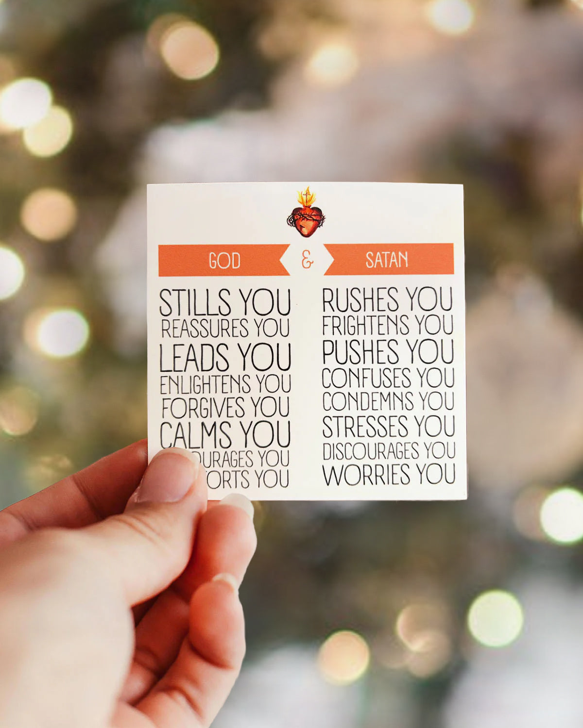 Satan rushes and God stills. Satan frightens and God reassures. Satan pushes and God leads. Satan confuses and God enlightens. Satan condemns and God forgives. Satan stresses and God calms. Satan discourages and God encourages. Satan worries you and God comforts.